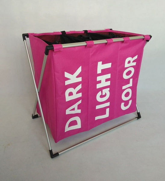SHUSHI Collapsible Dirty clothes laundry basket  Three grid bathroom laundry hamper Organizer  home office metal storage basket