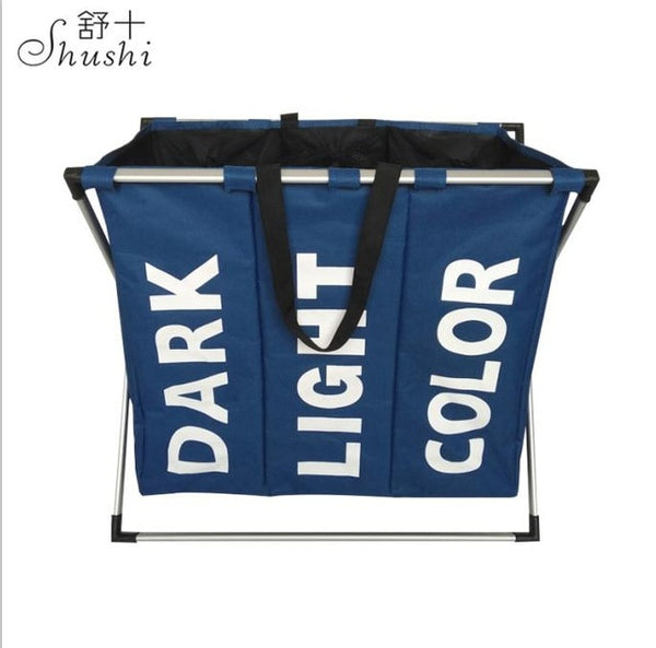 SHUSHI Collapsible Dirty clothes laundry basket Three grid bathroom laundry hamper Organizer home office metal storage basket