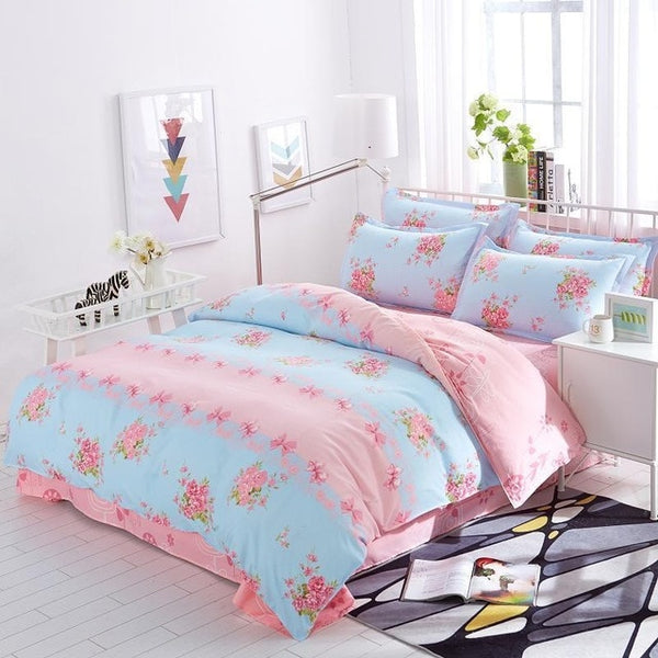 Solstice Cotton Pastoral Flower Cartoon Style Fashion Bedding Bed Linen Bed Sheet Duvet Cover Pillowcase 4pcs Bedding Sets/Queen